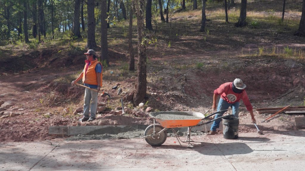 Los Caminos Artesanales consisten en la rehabilitación de terracerías y pavimentación con roderas de concreto hidráulico; en esta acción se emplea la mano de obra de mujeres y hombres de las comunidades, quienes reciben una remuneración económica.