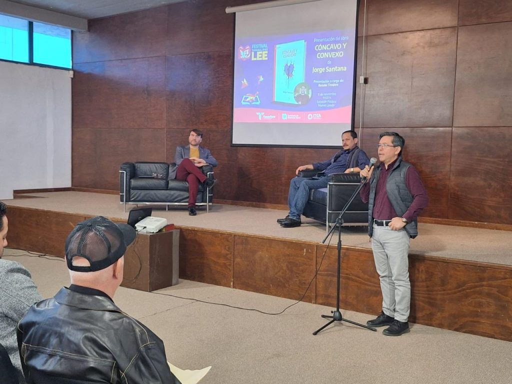 Esta mañana los eventos continuaron con la presentación de “Cóncavo y convexo”, libro del poeta neolaredense Jorge Santana, el cual forma parte de las ediciones seleccionadas por el Programa Editorial Tamaulipas 2025. Santana fue presentado por Renato Tinajero dentro de la misma dinámica y convivencia del Festival.