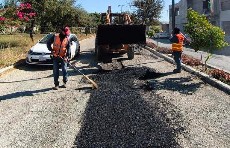 Cuadrillas de bacheo del municipio, atendieron reportes ciudadanos en la calle 12 de diciembre, entre República de México y Cerro de Tepeyac, del fraccionamiento Haciendas del Santuario; y se concluyó el recarpeteo del tramo carretero que conecta con el acceso a la colonia Lomas de Guadalupe.