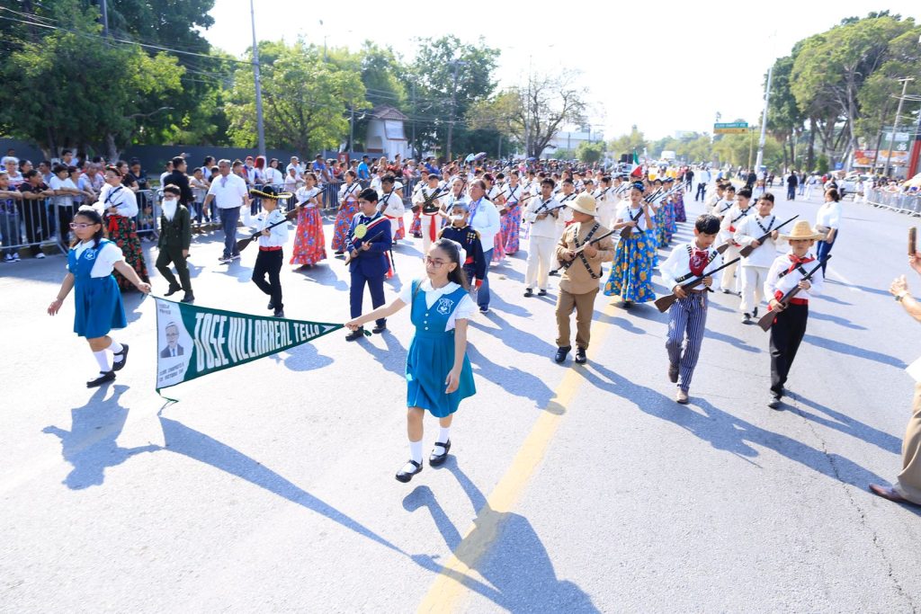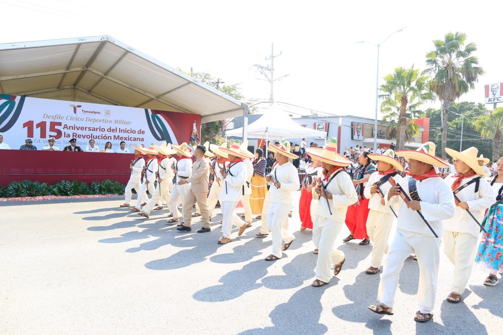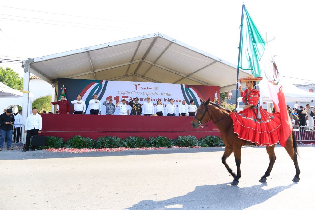 -Presidida por el gobernador Américo Villarreal, la fiesta cívica transcurre en paz, con la participación de más de 3,500 estudiantes, militares y elementos de seguridad