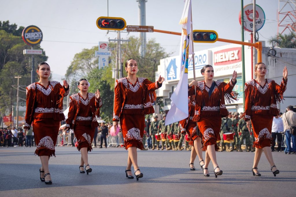 En un marco lleno de folclor, música tradicional mexicana, majestuosos vestuarios y mucho colorido, con representaciones de los caudillos revolucionarios, bailables y tablas gimnásticas, también desfilaron a lo largo del bulevar Tamaulipas 255 integrantes del Ejército Mexicano, Fuerza Aérea y Guardia Nacional, y 724 elementos de la Guardia Estatal, haciendo un total de más de 3,500 participantes.