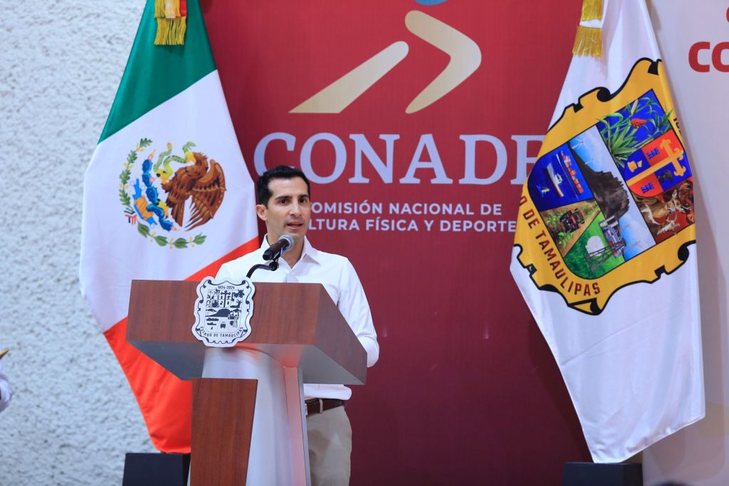Por su parte, el gobernador Américo Villarreal Anaya, acompañado de la presidenta del Sistema DIF Tamaulipas, María de Villarreal, dirigió un mensaje de reconocimiento y aliento a niñas y jóvenes que participaron en una exhibición deportiva y agradeció la presencia del director de la Conade, Rommel Pacheco, a quien le pidió transmitir a la presidenta de México, Claudia Sheinbaum Pardo, que en Tamaulipas la transformación y el enfoque humanista del gobierno federal “están vigentes y se reflejan en la práctica del deporte”.