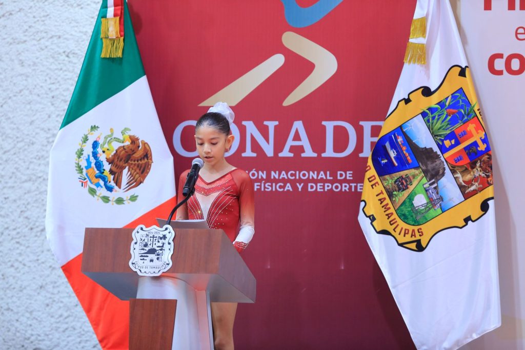 En este evento también hizo uso de la palabra la gimnasta Camila González Mata, quien agradeció al mandatario estatal por creer en ellas, a la par de asegurar que se van a seguir esforzando “por poner en alto a Tamaulipas”.