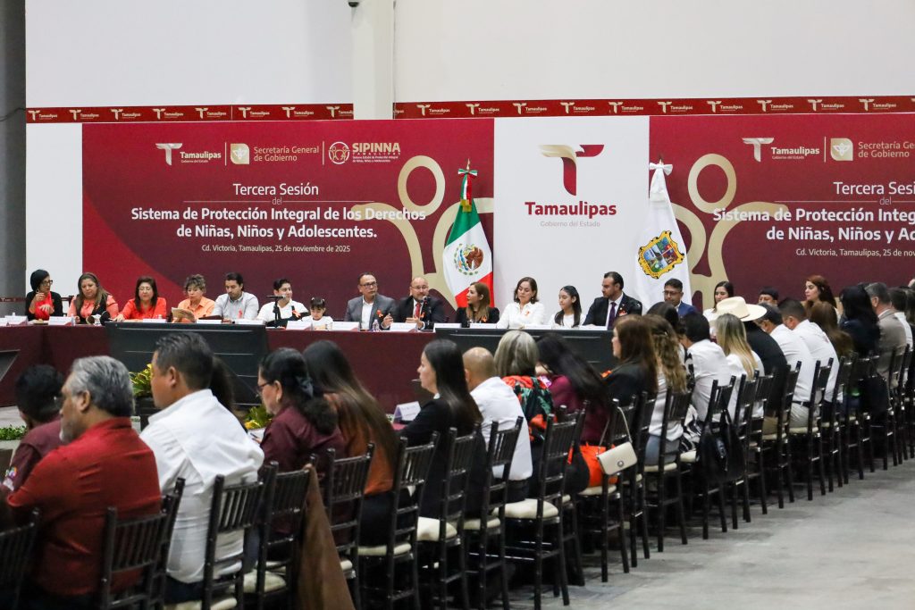Ciudad Victoria, Tamaulipas. – En representación del gobernador Américo Villarreal Anaya, el secretario general de Gobierno, Héctor Joel Villegas González, presidió la Tercera Sesión del Sistema Estatal de Protección Integral de los Derechos de Niñas, Niños y Adolescentes (SIPINNA), así como la Toma de Protesta de la Tercera Generación del OPINNA, en un evento realizado en las instalaciones del Polyforum de esta capital.