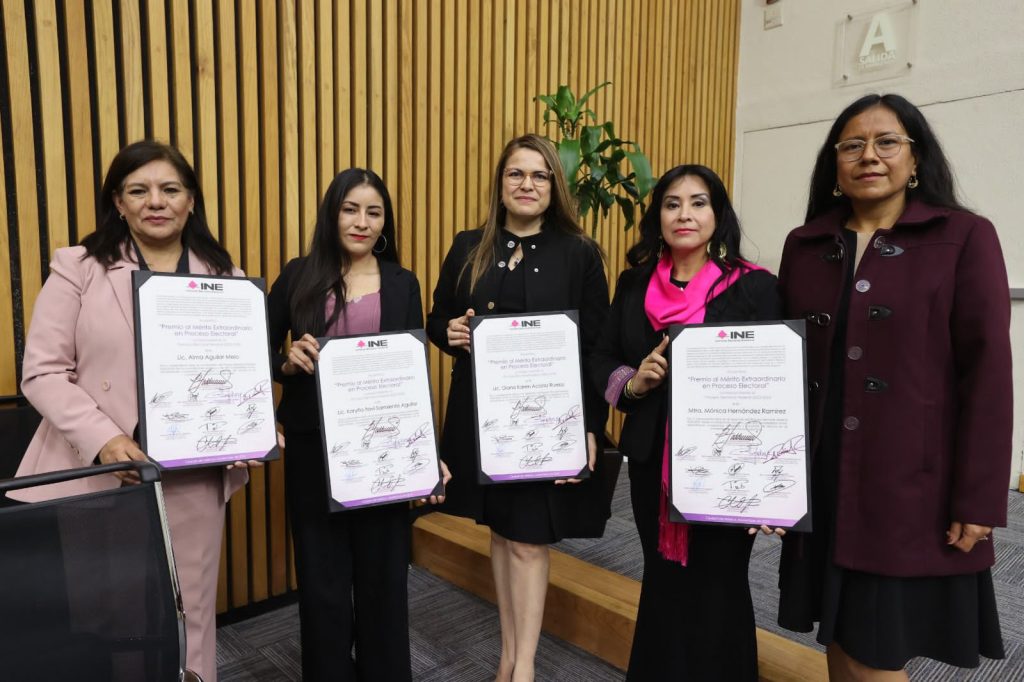 “El desempeño de este equipo ha sido ejemplar demostrando integridad, eficacia y liderazgo en condiciones adversas. Por ello, con profundo orgullo y sincera admiración, extiendo una felicitación y hago entrega de este reconocimiento a nuestras compañeras integrantes de la Junta Distrital Ejecutiva 08 de Oaxaca: Diana Karen Acosta Ruelas, Alma Aguilar Melo, Karyño Itavi Sarmiento Aguilar y Mónica Hernández Ramírez”.