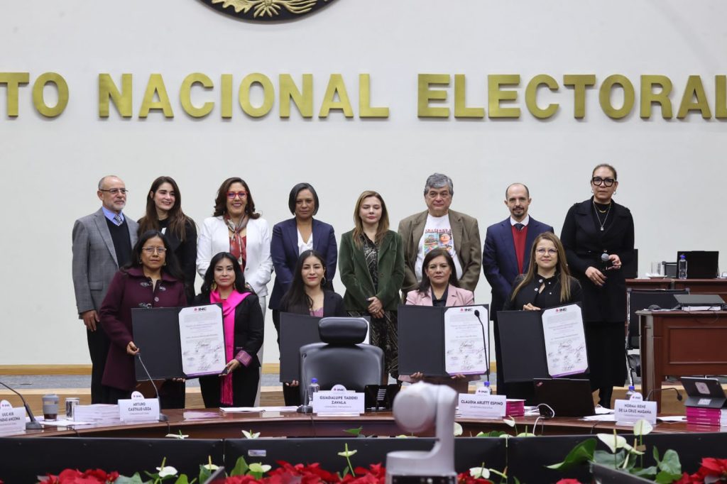 En este punto, la Consejera Presidenta, Guadalupe Taddei Zavala felicitó a las cuatro mujeres integrantes del Servicio Profesional Electoral Nacional (SPEN) que resultaron ganadoras y fueron postuladas por integrantes de su propia comunidad, lo cual “refleja el respeto, la confianza y el reconocimiento que han construido a través de su labor cotidiana en el territorio que ellas atienden”.