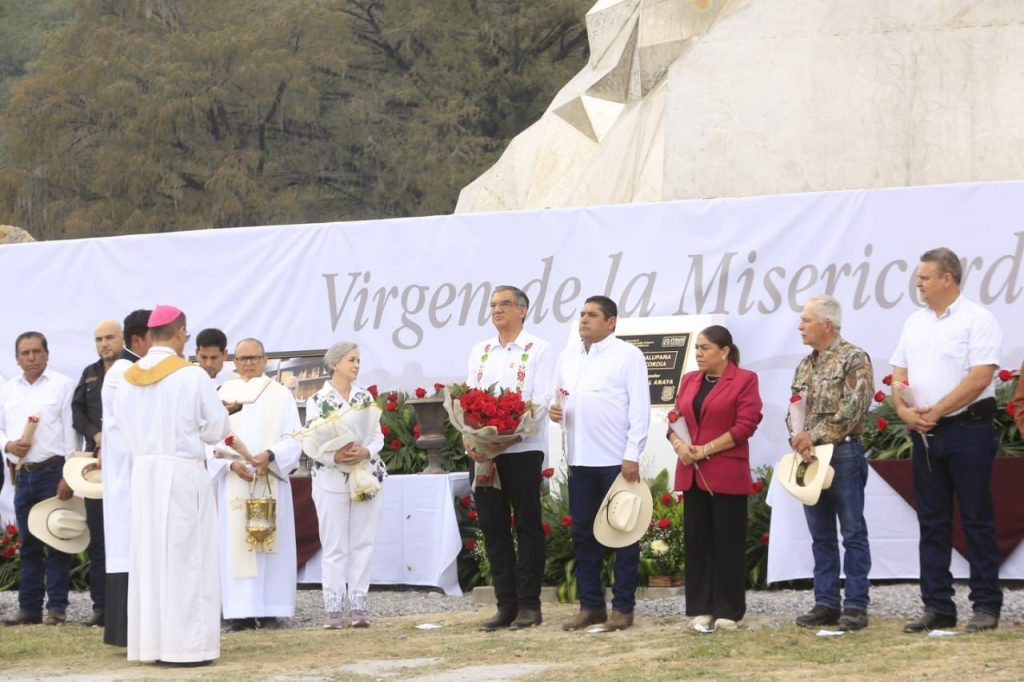 Hidalgo, Tamaulipas.- A partir de este día, Tamaulipas cuenta con un nuevo espacio de paz, fe y espiritualidad que contribuirá a fortalecer la unidad, la fraternidad y la esperanza, expresó el gobernador Américo Villarreal Anaya al entregar la escultura monumental de la Virgen de la Misericordia, en El Chorrito, municipio de Hidalgo.
