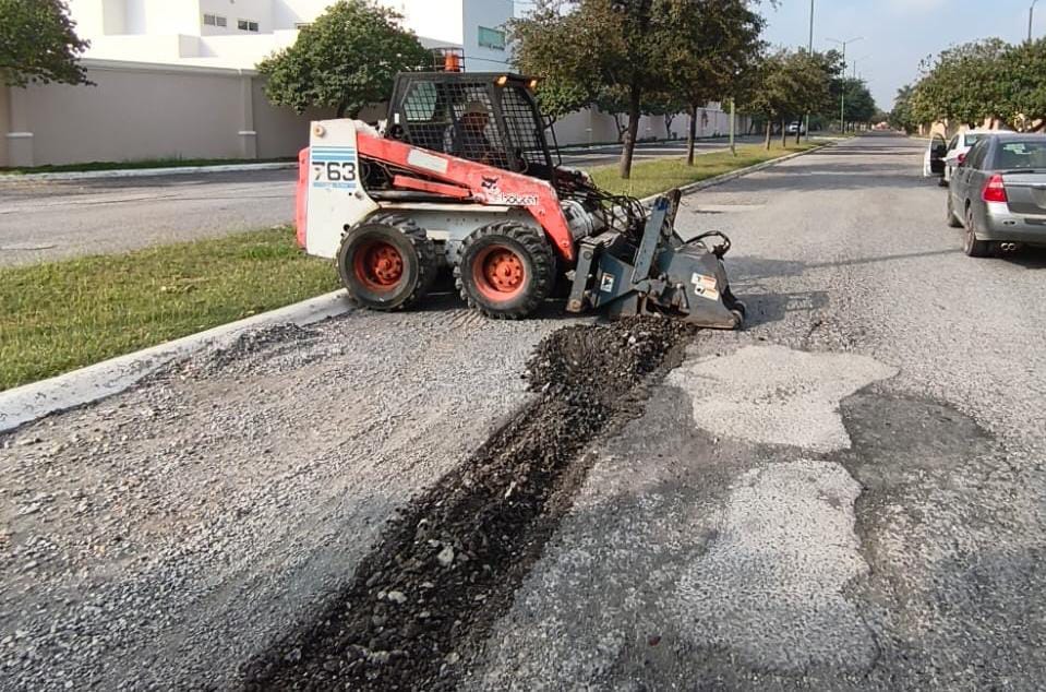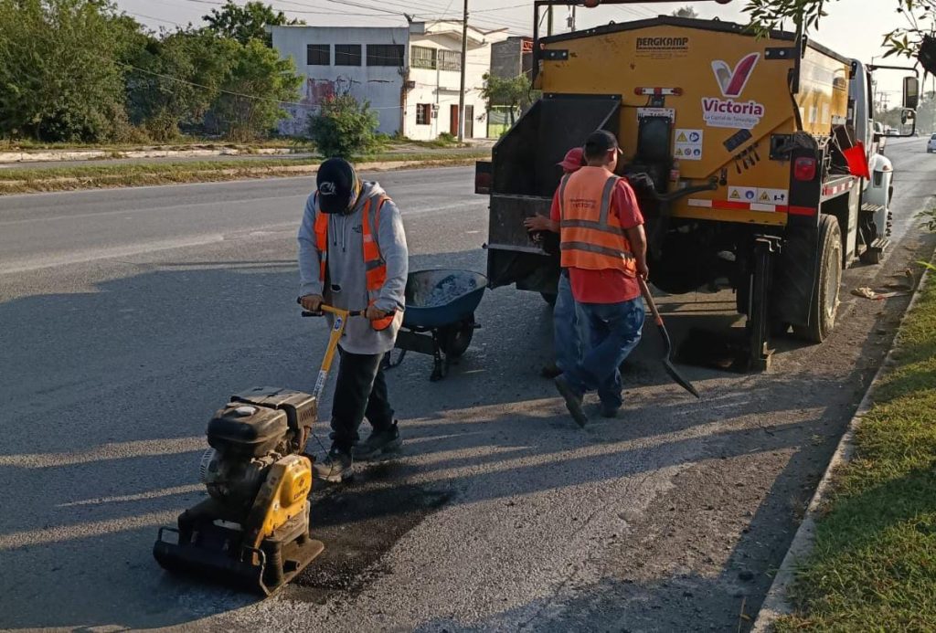 El programa de bacheo, incluyó la restauración de superficie de rodamiento en la Avenida de la Unidad, entre Carlos Adrián Avilés y libramiento Portes Gil; y calle Fundadores del Nuevo Santander, del Residencial Villa del Palmar.