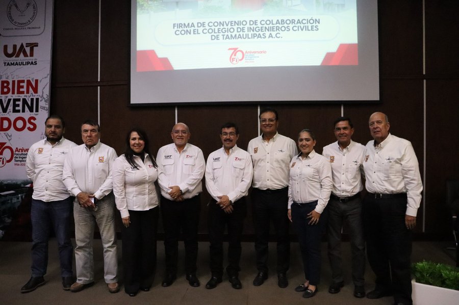 En su visita, el rector presidió la firma del convenio de colaboración entre la UAT y el Colegio de Ingenieros Civiles de Tamaulipas, con la participación del presidente del organismo colegiado, Darío Alfonso Brambila Mendoza, destacándose el objetivo de fortalecer la formación profesional, impulsar la educación continua y generar proyectos conjuntos que respondan a los retos de la infraestructura y el crecimiento urbano del estado.