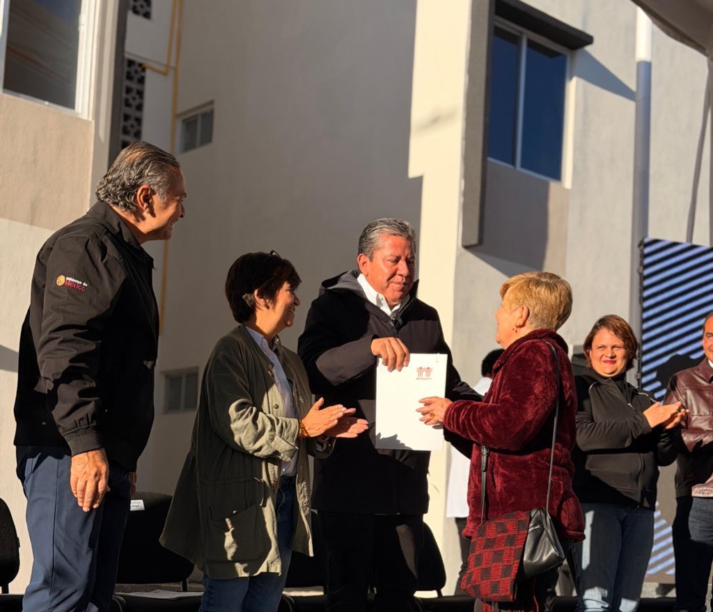 En la entrega de Viviendas Bienestar en el desarrollo Ojo de Agua, el director del Infonavit, Octavio Romero, dio a conocer que de las 208 viviendas que componen el fraccionamiento, a 154 familias ya les fueron entregadas las llaves de sus hogares, y hoy se hizo la entrega de 45 llaves más.