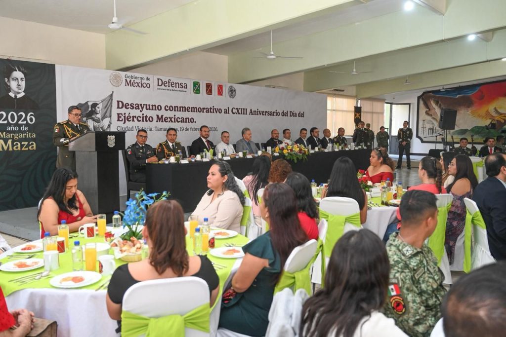 Cd. Victoria, 19 de febrero de 2026.- En el marco del CXIII Aniversario del Día del Ejército Mexicano, el presidente municipal de Victoria, Eduardo Gattás Báez, reconoció a la institución la labor de seguridad, bienestar y desarrollo que realiza por la Capital del Estado.