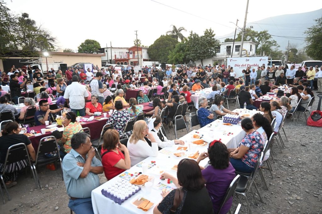 Más de 400 amas de casa, jefes de familia y niños del sector reunidos en el área deportiva, disfrutaron de juego de lotería, beneficios de las distintas áreas del gobierno municipal, apoyo de dependencias federales, cine infantil y pintura.
