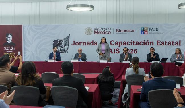 La secretaria de Bienestar, Ariadna Montiel Reyes, dio inicio a la Jornada Nacional de Capacitación del Fondo de Aportaciones para la Infraestructura Social (FAIS) 2026, con representantes de las 32 entidades federativas para fortalecer los mecanismos de ejecución de este fondo que tiene como propósito combatir la pobreza y la desigualdad, mediante la inversión en obras de infraestructura social básica.