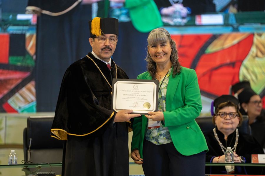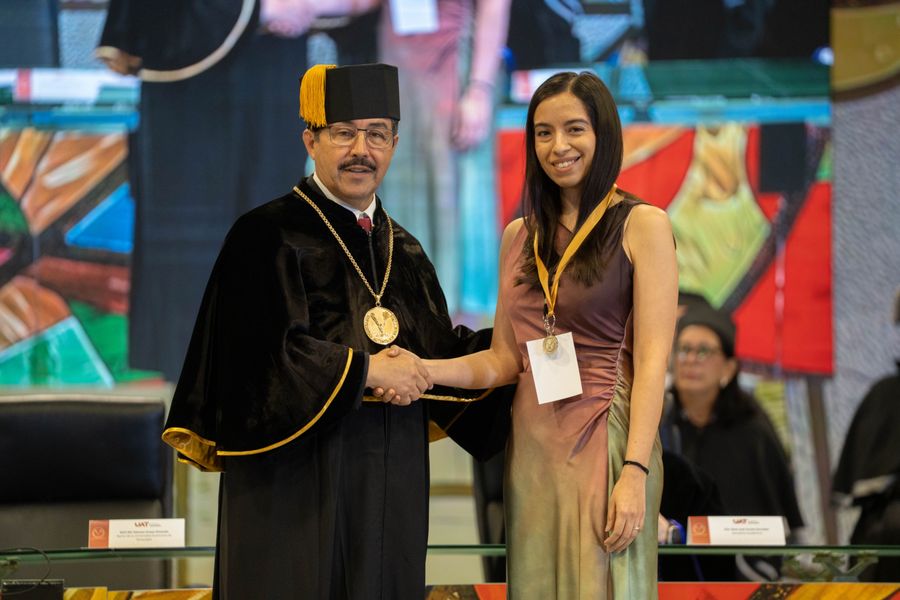 En esta ceremonia, el rector hizo entrega de 13 premios en las categorías de Profesor Extraordinario; 70 Diplomas al Mérito Universitario; 26 distinciones de Profesor Emérito, con la Medalla “Miguel Azomoza Arronte”, símbolo del legado sembrado en generaciones de estudiantes. También otorgó 54 Medallas “Francisco T. Villarreal” a alumnas y alumnos con el más alto promedio, a quienes felicitó por representar el talento y la disciplina que distingue a la UAT.