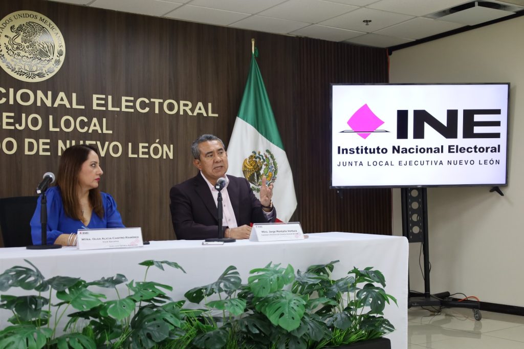 El Consejero del Instituto Nacional Electoral (INE), Jorge Montaño Ventura, ofreció una conferencia de prensa en el marco de una reunión de trabajo en la Junta Local Ejecutiva del Instituto en el estado de Nuevo León, con el objetivo de dar seguimiento y evaluar el avance de las actividades institucionales que se desarrollan en la región.