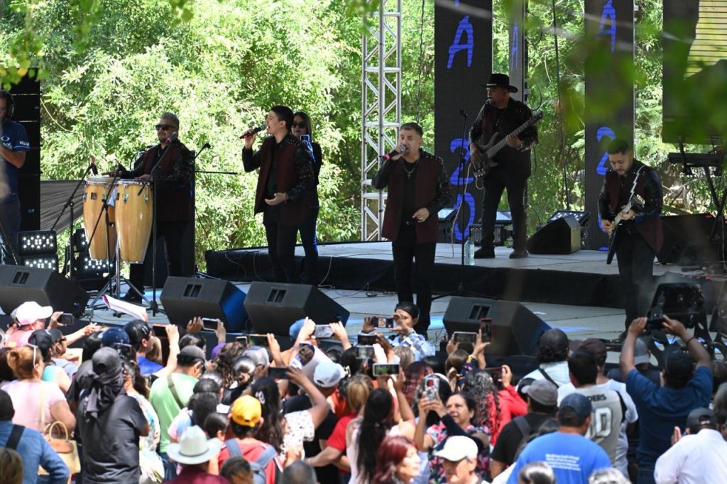 A temprana hora, las agrupaciones Paso Norteño, San Marcos, Dorados de Villa y el estelar de Grupo Azteca; encendieron el ánimo al poner a bailar a los más de 4 mil asistentes que se dieron cita en el escenario montado en la margen del emblemático río de la Capital del Estado.