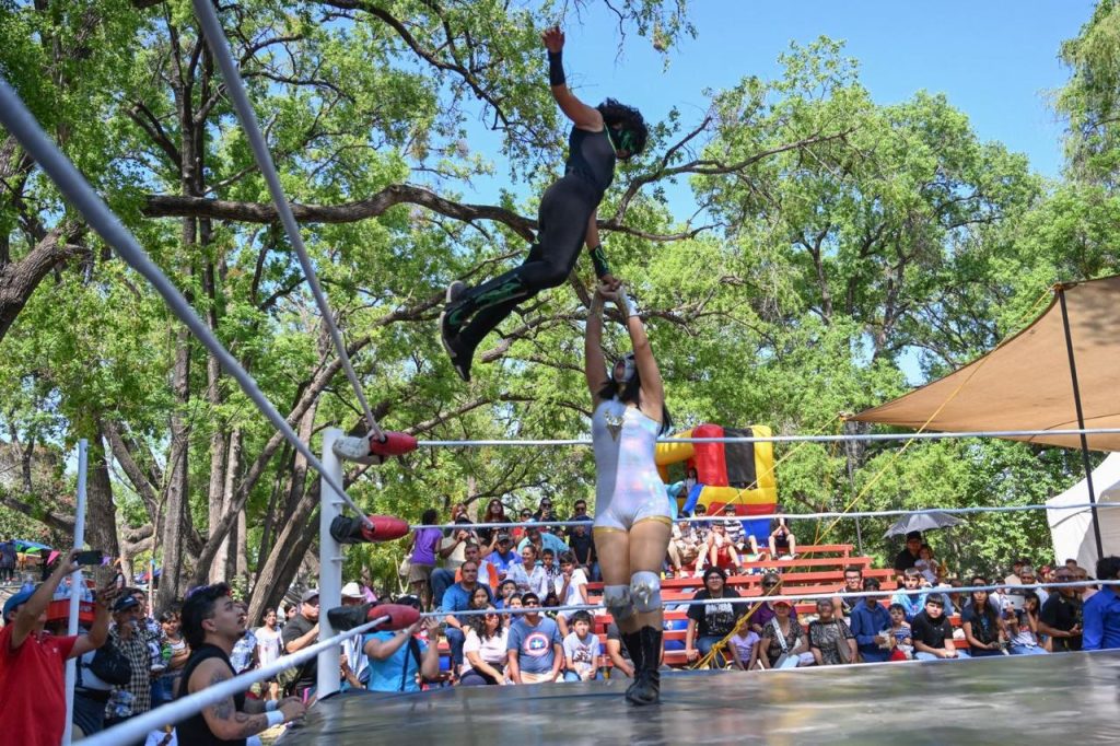 “Hagamos de Victoria un atractivo turístico para la diversión y convivencia familiar” invitó Gattás Báez a mujeres, hombres, jóvenes y niños que llenaron la pista de baile y graderío para disfrutar de llaves y lances aéreos de los gladiadores enmascarados.