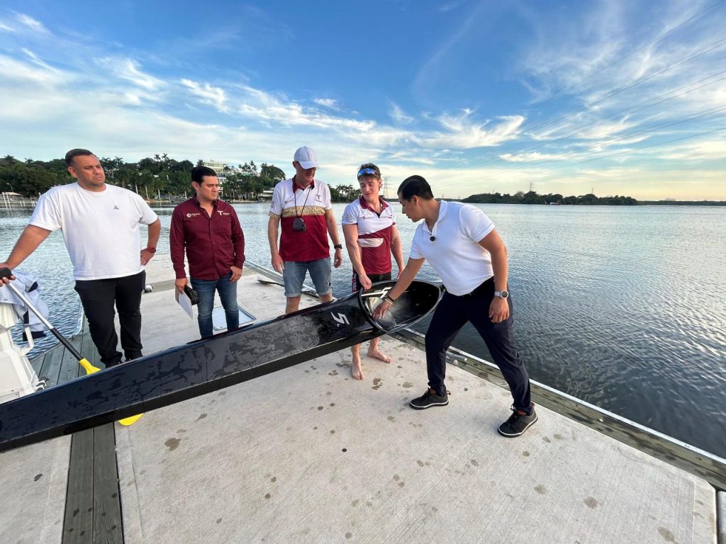 Durante el encuentro en la Laguna del Chairel de Tampico, sitio donde entrena el equipo, Virués Lozano realizó la entrega formal de una embarcación para el seleccionado nacional y medallista, Diego Popa, como parte de las acciones para fortalecer la preparación de los atletas tamaulipecos.