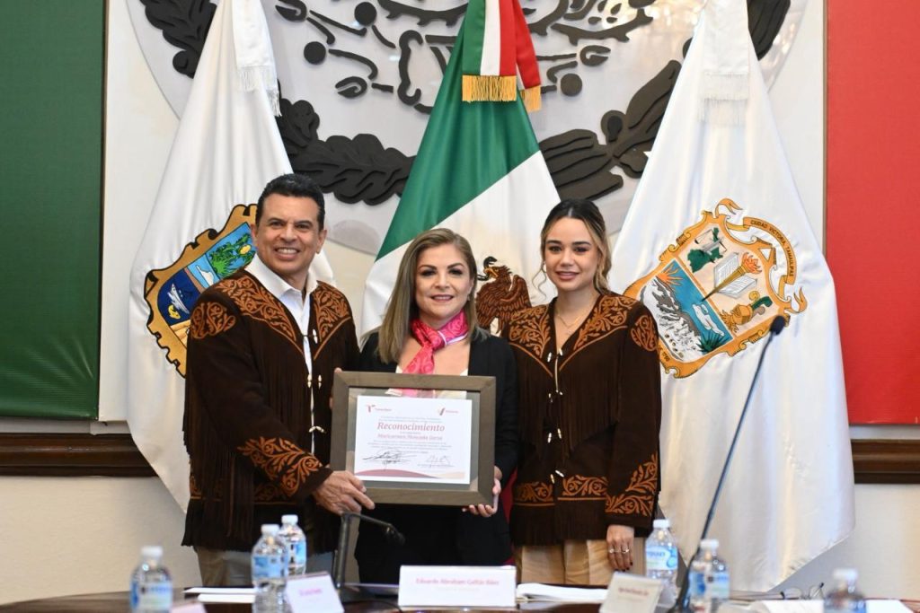 -Como parte del festejo se entregó reconocimiento a destacadas mujeres empresarias y se inauguró la restauración del mural “Alegoría de Tamaulipas en el tiempo”, en Palacio Municipal.