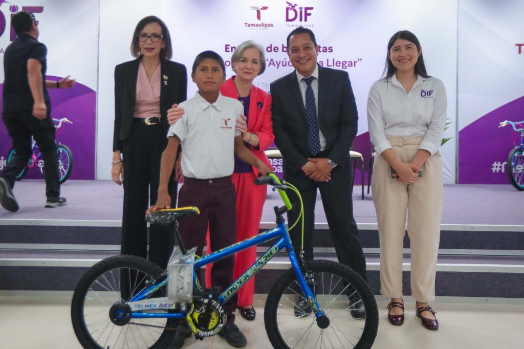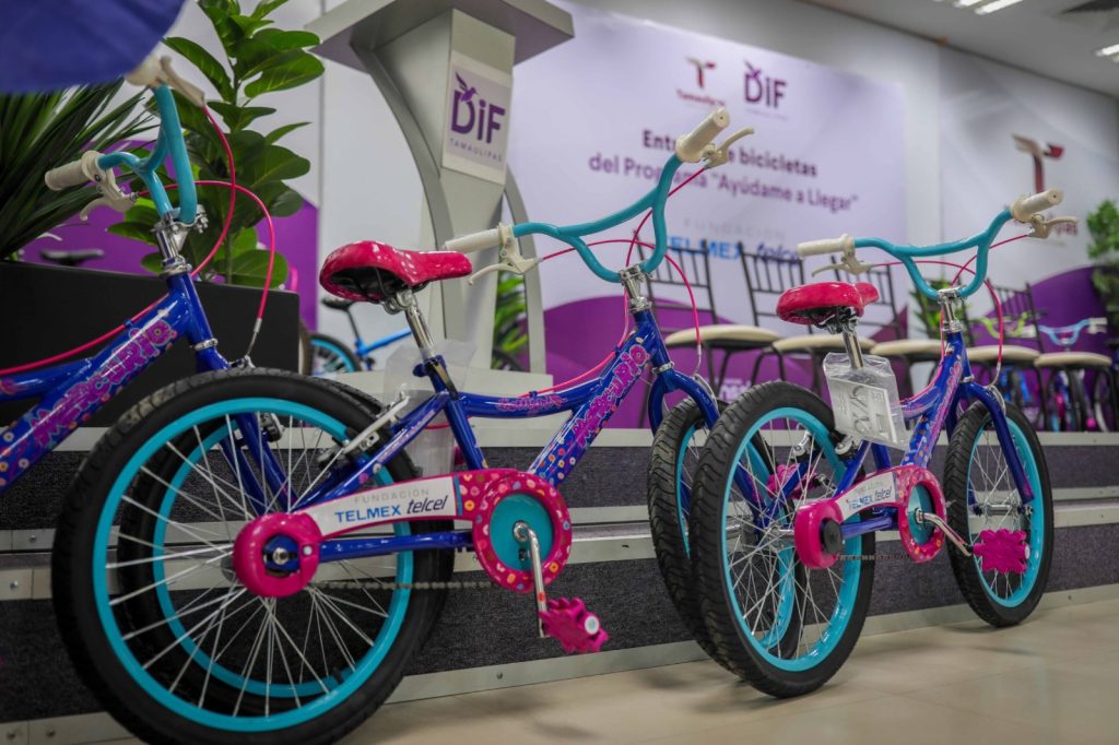 Ciudad Victoria, Tamaulipas. Con el propósito de garantizar el bienestar, reducir el ausentismo y la deserción escolar de niñas y niños en comunidades de atención prioritaria, el Gobierno de Tamaulipas, a través del Sistema DIF Tamaulipas, presidido por la doctora María de Villarreal, y la Fundación Telmex Telcel, realizaron la entrega de 100 bicicletas a igual número de beneficiarios de siete municipios del estado.