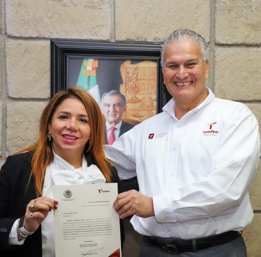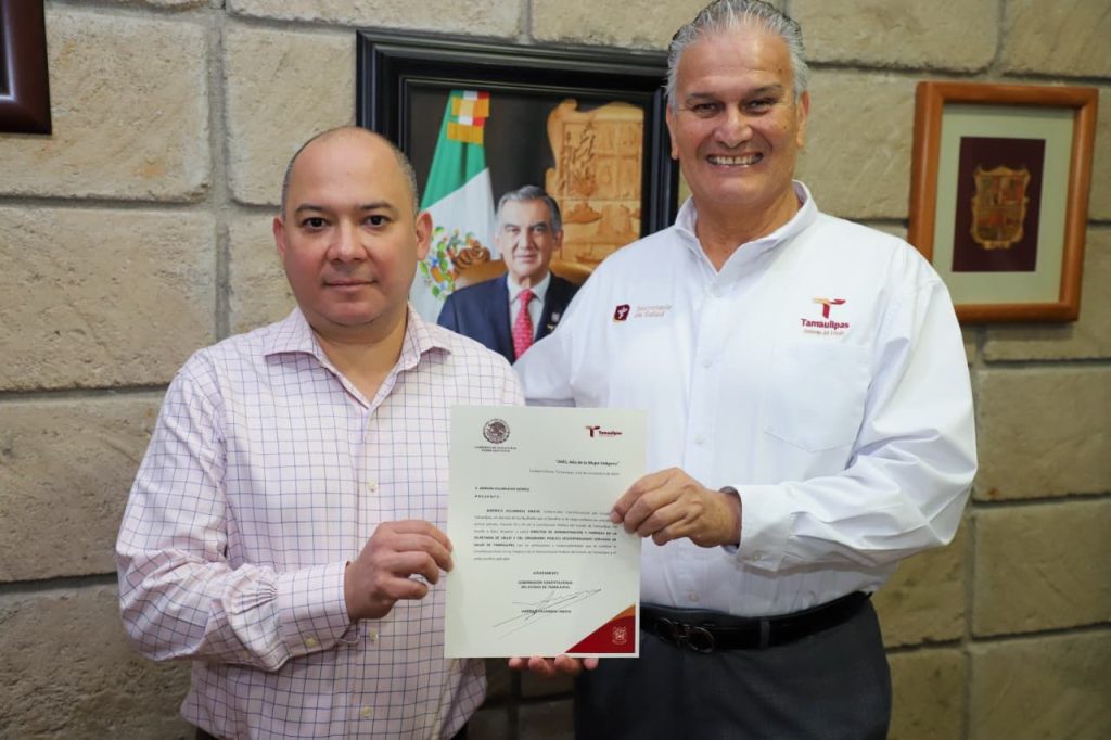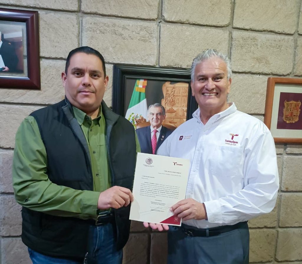 Ciudad Victoria, Tamaulipas.- Con la entrada en vigor y después de las reformas a la nueva estructura orgánica, por instrucción del gobernador Américo Villarreal Anaya, el titular de la Secretaría de Salud de Tamaulipas, Vicente Joel Hernández Navarro, hizo entrega de los nombramientos a los nuevos titulares de la dependencia estatal.
