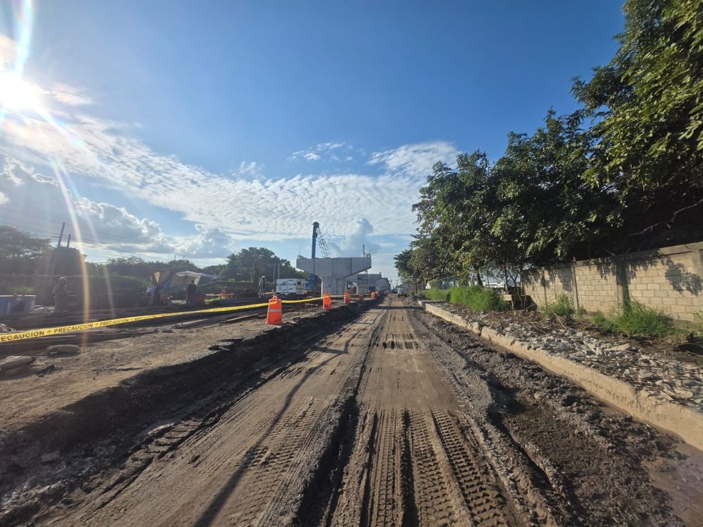 Actualmente, se lleva a cabo la construcción del colector pluvial, se trabaja en losas, diafragmas, trabes y pilotes en los cuerpos A y B; además del montaje de 78 trabesde un total de 132 y la conformación de la base hidráulica en la troncal del cuerpo B.