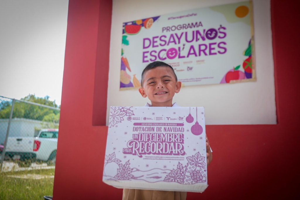 González, Tamaulipas.– Durante el mes de diciembre, el Sistema DIF Tamaulipas, que preside la doctora María de Villarreal, realizó en todo el estado la entrega de la dotación navideña del Programa Desayunos Escolares “Una Navidad para Recordar”, mediante la cual se benefició a alumnas y alumnos de 2,575 escuelas de los 43 municipios de la entidad.
